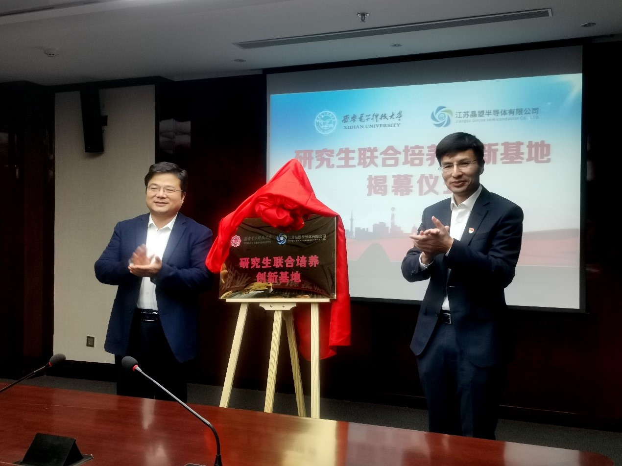 在邳州高新区产业发展座谈会上,卢硕与邳州市委常委、副市长伏旭,共同为西安电子科技大学与江苏晶曌半导体有限公司“研究生联合培养创新基地”揭牌。期间,还专程看望了我院在邳州高新区实习的研究生。