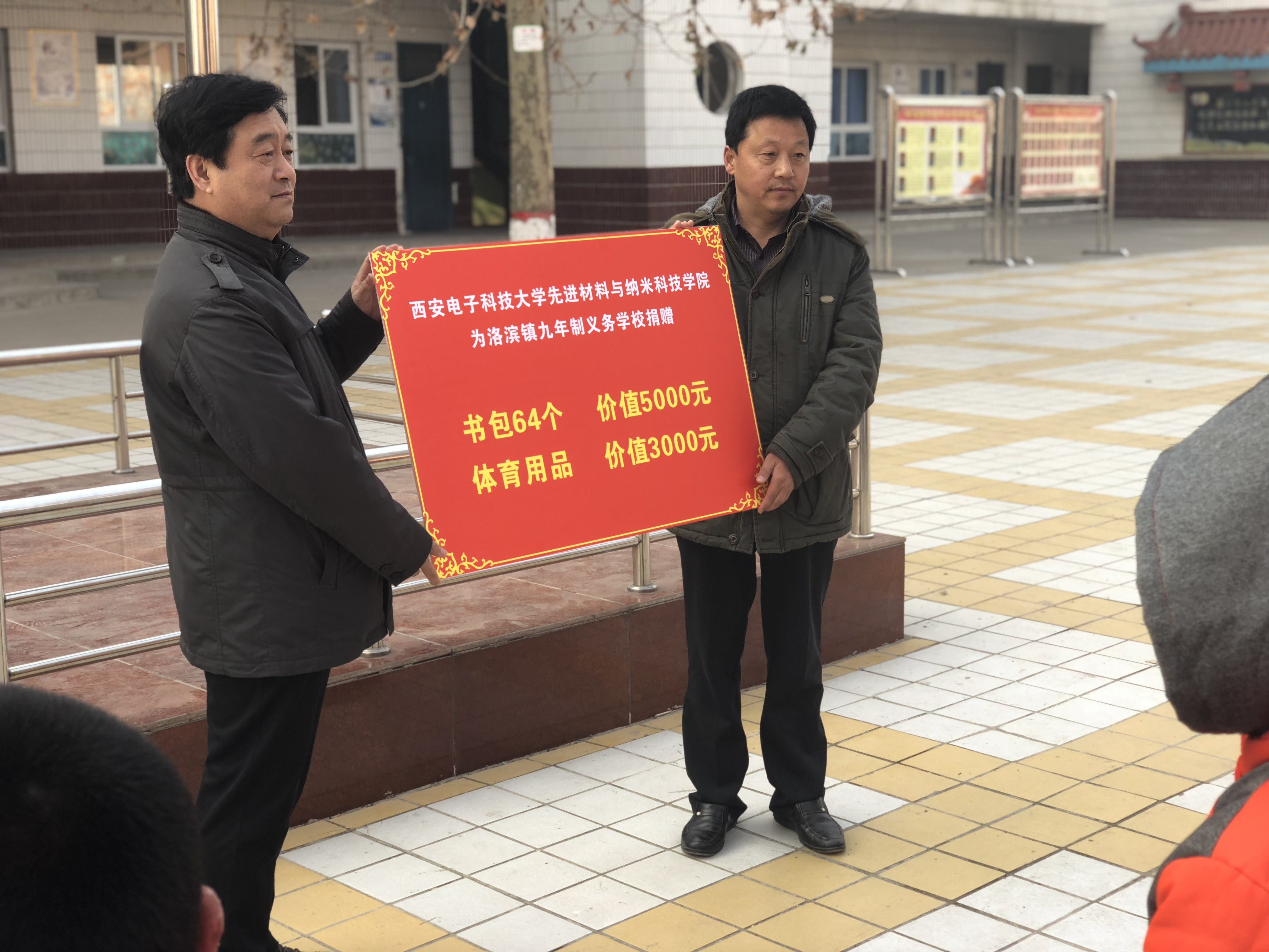 蒲城县洛滨镇九年一贯制学校是西安电子科技大学定点扶贫“一院一校”行动计划中先进材料与纳米科技学院的定点帮扶对象,学院将建立长期的帮扶机制,并通过多种帮扶形式全面提升扶贫工作的效果,更好地发挥教育在精准扶贫、精准脱贫中的重要作用。