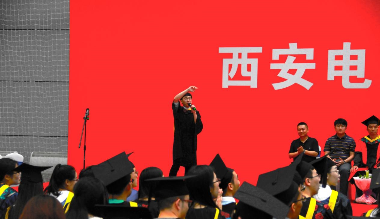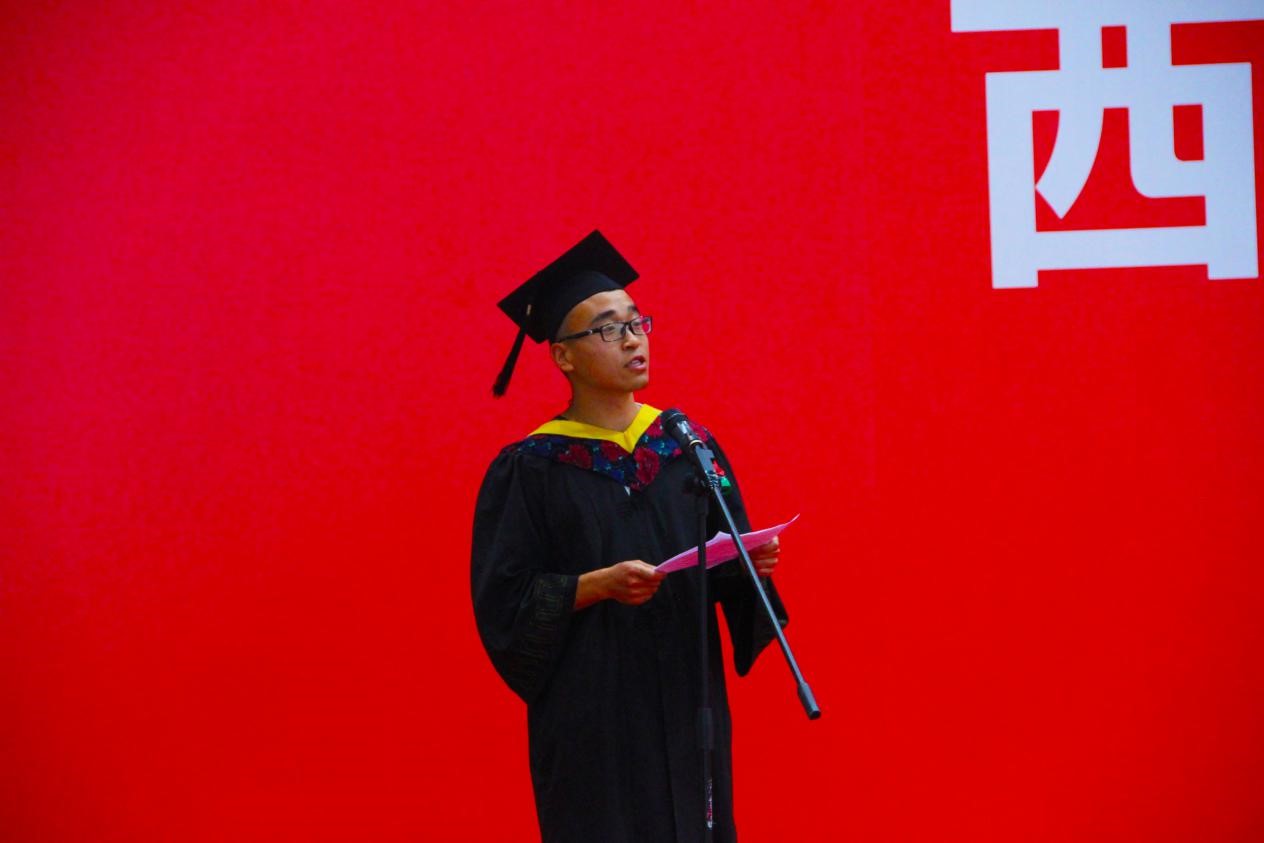 硕士研究生代表张晨阳、本科生代表李泊龙分别发言,在发言中他们回忆了在校期间与老师、同学之间一幕幕难以忘怀的时刻,有刚入学对校园生活的憧憬,有多年生活的点点滴滴逐渐升华的强烈情感,有在求学期间的收获与成长,几年的西电求学生涯,终将为每一位毕业学子刻上深深的西电烙印。不忘初心,砥砺前行,他们代表2018届材料学院毕业生感谢母校、学院以及辛勤付出的老师们的培养和帮助。