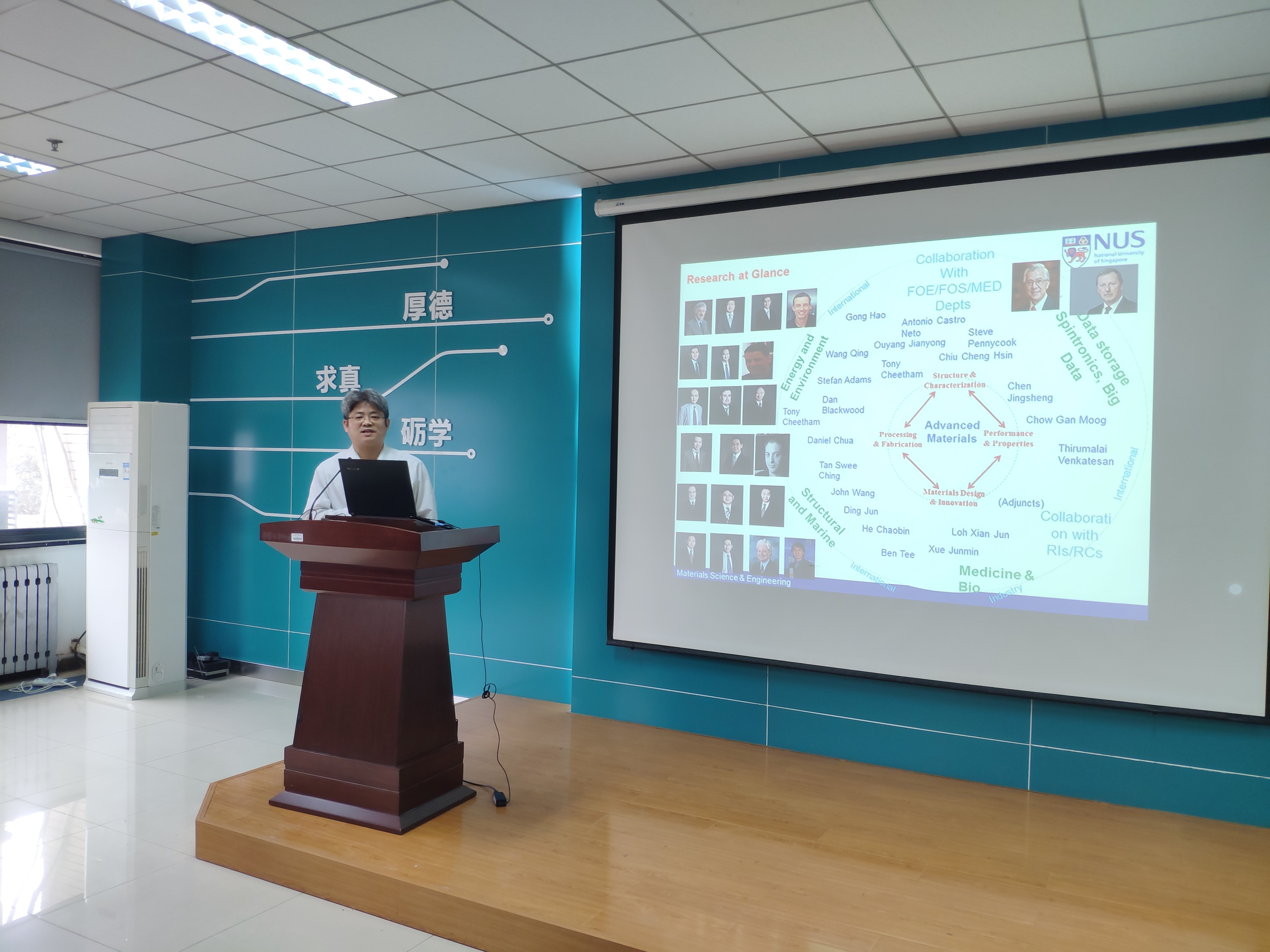 会上,新国大丁军和欧阳建勇详细介绍了新国大材料科学工程系的发展历程、研究方向、学院老师概况、学科排名以及衣食住行各个方面的情况,引起了在场各位同学的浓厚兴趣。