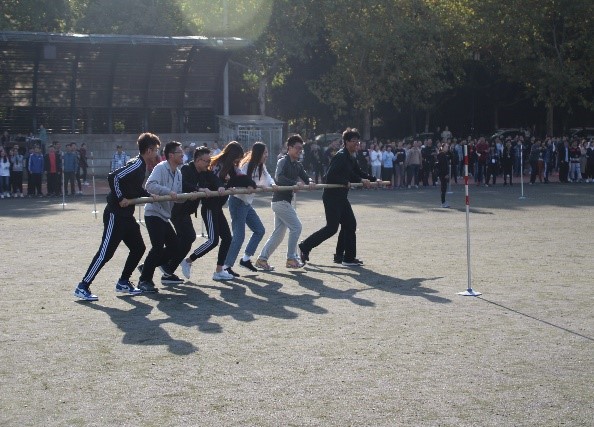 最令人难忘的是拔河项目,我院对手是势均力敌的微电子院。你方力拔山兮,我方寸土不让。战况灼人,围观的同学与老师齐声呐喊,紧攥拳头为我们材料学子加油助威!虽最后一刻惜败,但那一刻齐力断金的场景深深烙印在我们每一位同学的记忆里。在50米绑腿同行的比赛中,训练有素的同学们喊着号子,整齐划一迈着步子向终点冲去,在中场部分队伍出现了一些状况,有些同学脚步出现了错乱更是波及一片,这时远远听到刘男老师焦急的声音,体育委员迅速冲上去,你抱我挪,同学们互相助力最终到达了终点。这个项目我院取得了第五名的好成绩。
