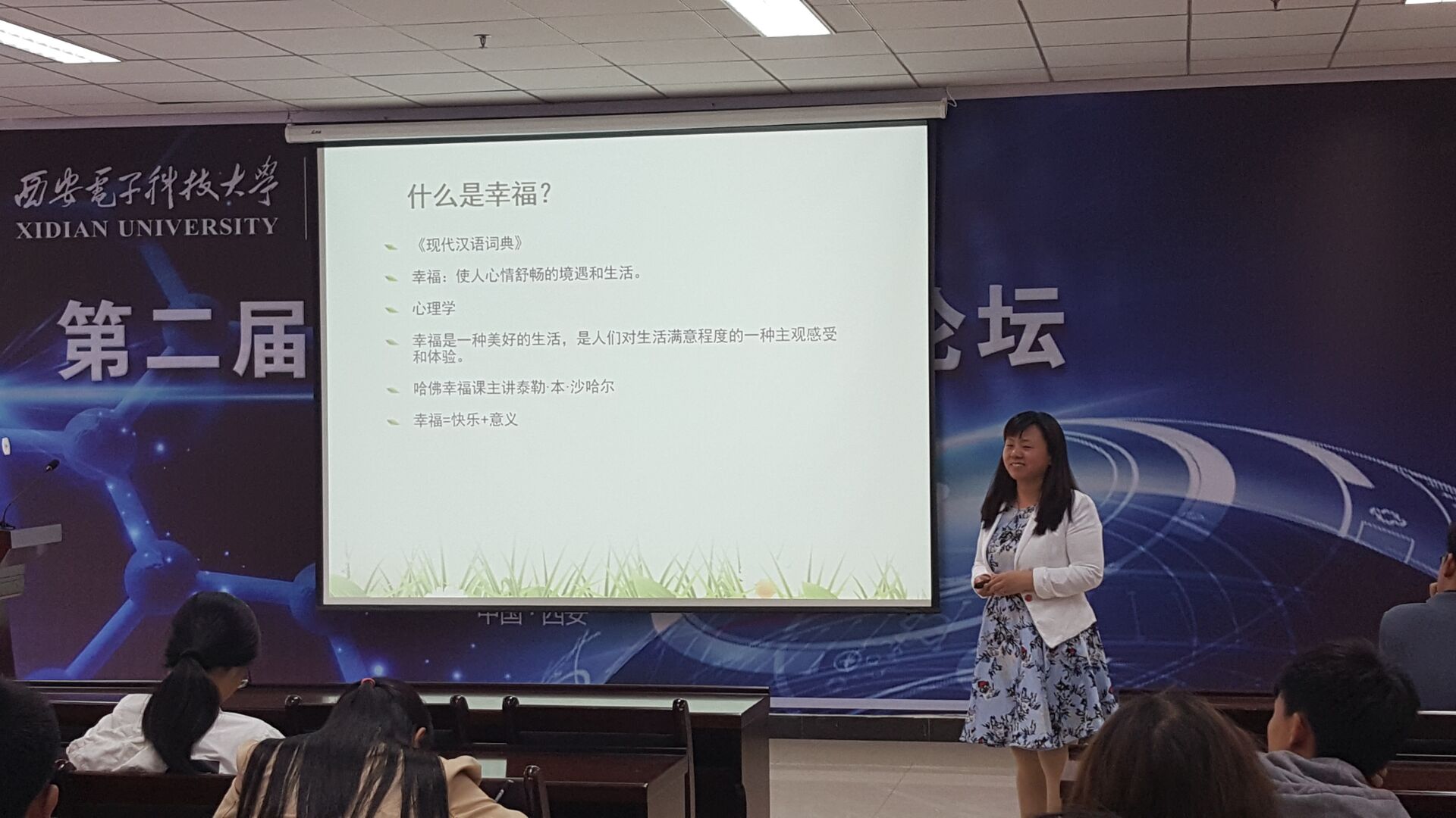 讲座一开始,武老师问了同学们一个简单但却富含深意的问题:“你幸福吗?”,同学们回答各异,但大部分人表示对自己的生活还算满意。接着,老师播放了一段科普视频,并围绕“每个人生下来都是冠军”进行了一番精彩的阐释。随后她围绕“每个种子都有适合自己的土地”,鼓励同学们发掘自身优势,启发同学们了解自己的气质类型和性格色彩,这对每个人将来的发展有重要意义。最后,老师组织同学们进行了此次讲座最有趣的环节,七人一组,组内同学互相轮流说出对方的所有优点的游戏。刚开始,同学们就进行了激烈地讨论,整个讨论充满欢笑,经过讨论,原来每个看似平庸的同学都像珍珠一样,散发着明亮而独特的光芒。讲座在融洽、欢乐的氛围中结束,同学们为武老师热烈鼓掌。