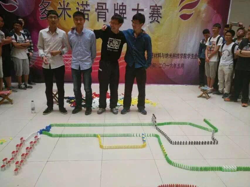 (通讯员 张梁舒彤)5月18日下午,在丁香公寓12号楼大厅内,由先进材料与纳米科技学院学生会举办的“开拓杯”多米诺骨牌大赛拉开了第一天比赛的序幕。14级辅导员李伟嘉、15级辅导员钟决坤以及学生会主席田百川到场观摩。