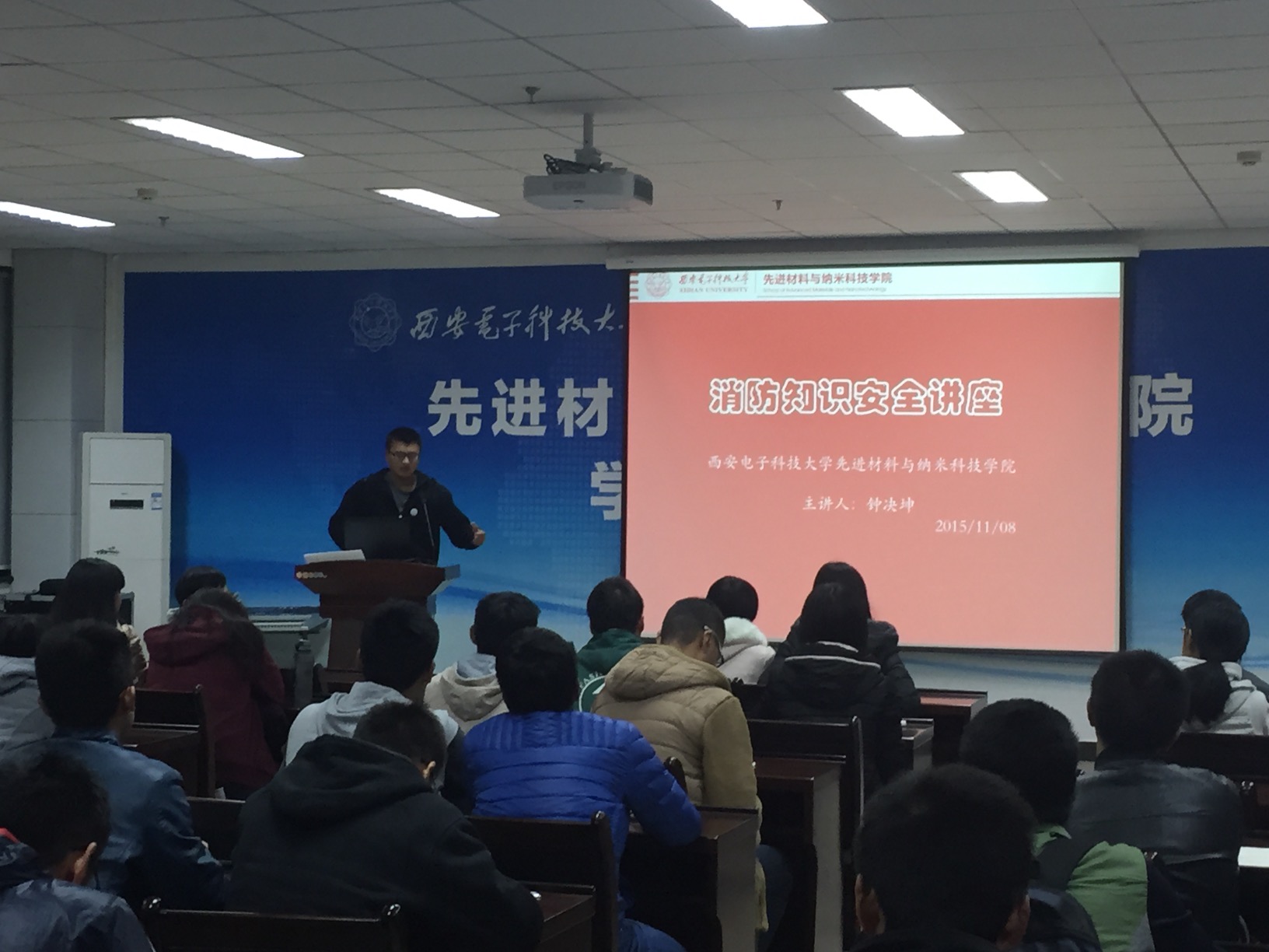 (通讯员 钟决坤)为进一步推动大学校园消防安全工作、培养大学生消防安全的“四个能力”、落实学校消防安全工作要求, 11月8日晚19:00,先进材料与纳米科技学院在G楼118举办了“消防安全教育”讲座。15级新生辅导员钟决坤主持,全体本科新生参加了此次讲座。