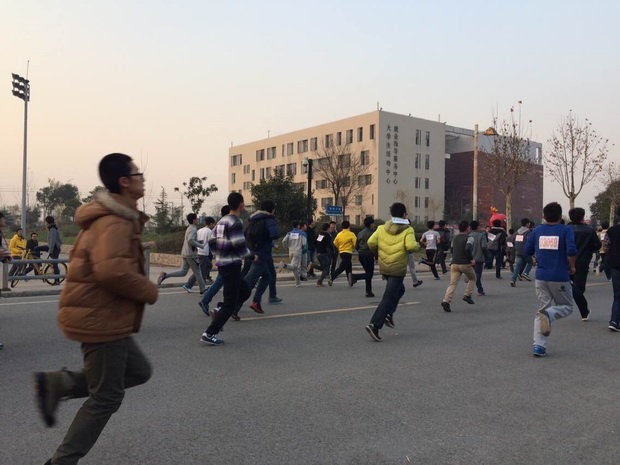 (通讯员 周紫菱)12月5日下午,在南校区南操场,先进材料与纳米科技学院党委书记黄伟、团委书记刘男、14级辅导员李伟嘉以及全体大一学生、学生会部分成员参加了“第八届亿万学生阳光体育冬季长跑活动”的启动仪式及比赛。