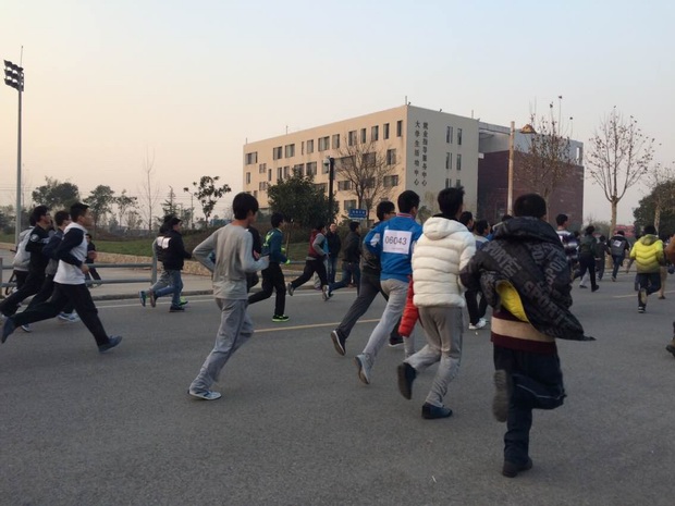首先,在学校领导的指挥下,冬季长跑启动仪式正式开始。各班体育委员带领参赛选手到指定位置集合、整队、发放号码牌。接着,学生会体育部部长陈德鑫说明了注意事项以及男女生的长跑路线。随后比赛开始,由各院领导带领各院选手进行了短跑热身。接着,在裁判的发令枪声下男女生开始了长跑活动。比赛中各选手全身心的投入比赛,坚持跑完女生2000米、男生3000米的全程,各学院领导也在为各院选手加油打气。