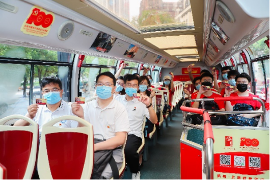 早上8:00,实践队全体成员从五卅运动纪念碑出发,乘坐红色主题专线,边聆听边观赏,在移动的党史学习教育课堂中全面感受上海的“红色基因”,最后停靠中共一大会址站。
