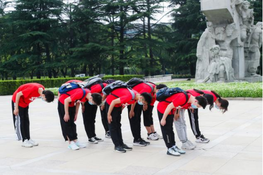 “丹心碧血为人民”。怀着对革命烈士崇敬的心情,实践队员前往龙华烈士陵园,在纪念广场为烈士敬献花篮,并在纪念碑前深深鞠躬。随后,大家在讲解的带领下进入纪念馆。