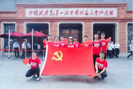 中共一大会址是中国共产党梦想启航的地方,是中国共产党人的精神家园。1921年7月23日,中国共产党第一次全国代表大会在望志路召开,宣告了中国共产党的成立。百年过后,实践队队员来到这个起点,回首我党走过的百年风雨,重温初心使命。在中共一大会址前,同学们高声歌唱《没有共产党就没有新中国》,歌声回响在出发的地方,梦想和初心历经百年沧桑依旧焕发光芒。