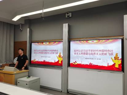接下来由网信学院的谢宇航同学进行宣讲,他围绕习近平新时代中国特色社会主义思想,从理论和实践两个角度出发,向参会党员阐释了“如何认识习近平新时代中国特色社会主义思想是马克思主义的新飞跃”。同时他结合自身在陕西支教以及前往四川凉山州调研的经历,用照片视频的形式为参会者展示了我国脱贫攻坚所取得的成果。