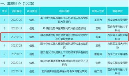 (通讯员 石文超)近年来,先进材料与纳米科技学院通过“华山学者人才计划”引进了一批优秀的青年教师队伍。学院立足于国家重大需求,建设以物理、化学为基础,材料与电子交叉为特色的材料学科,服务于学校电子信息优势学科的发展,培养电子信息特色的材料类人才。基于学院的平台建设和特色学科发展,学科专业优势突出,人才队伍成效显著,高层次人才不断涌现。近日,陕西省科协公布了陕西省青年人才托举计划项目的评审结果,该项目是为了重点扶持、加快培养有较大发展潜力的年轻科技工作者,扶持年轻人才逐步成长为德才兼备、勇于创新的优秀科技人才,我院青年教师周龙成功入选陕西省青年托举人才项目。