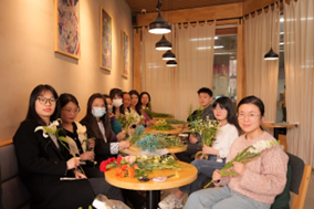 为了丰富同学们的业余文化生活,增进同学间的交流,提升同学们的心理素质,激发大家以更加饱满的热情投身到今后的学习中去,3月10日下午,先进材料与纳米科技学院邀请专业花艺师恒心老师,以“春风有信 花开有期”为主题在南校区图书馆咖啡厅开展“鲜电下午茶”研究生主题沙龙活动。