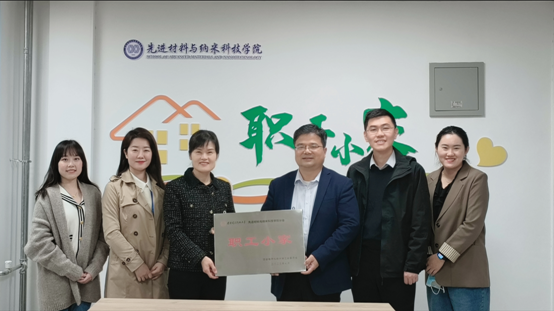 (通讯员 杜敏)10月19日下午,先进材料与纳米科技学院“职工小家”揭牌仪式在工训中心四区302举行。校工会常务副主席吴秀霞、教工文化科科长杨景等一行莅临学院,材料学院党委书记卢硕,副书记陈刚参加。