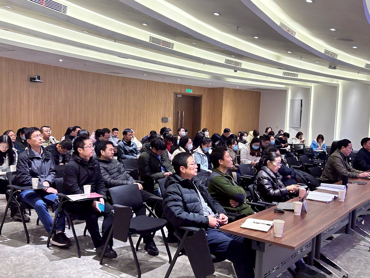 学院副院长施建章对学院近五年教育教学相关工作作总结汇报,他重点阐述当前学院人才培养中存在的教学突出问题,希望教师能够提高认识,不断提升业务能力和教学质量,成为业务精湛的高素质教师,并且要严抓课堂学风建设,提高学生课堂抬头率,保障课堂教学质量。