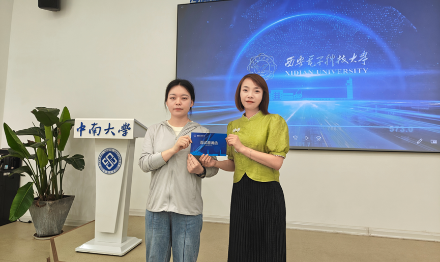 在中南线,邓悦参加了中国科学技术大学、武汉大学、中南大学基础学科专场人才招聘宣讲,现场发放宣传册、面试邀请函。