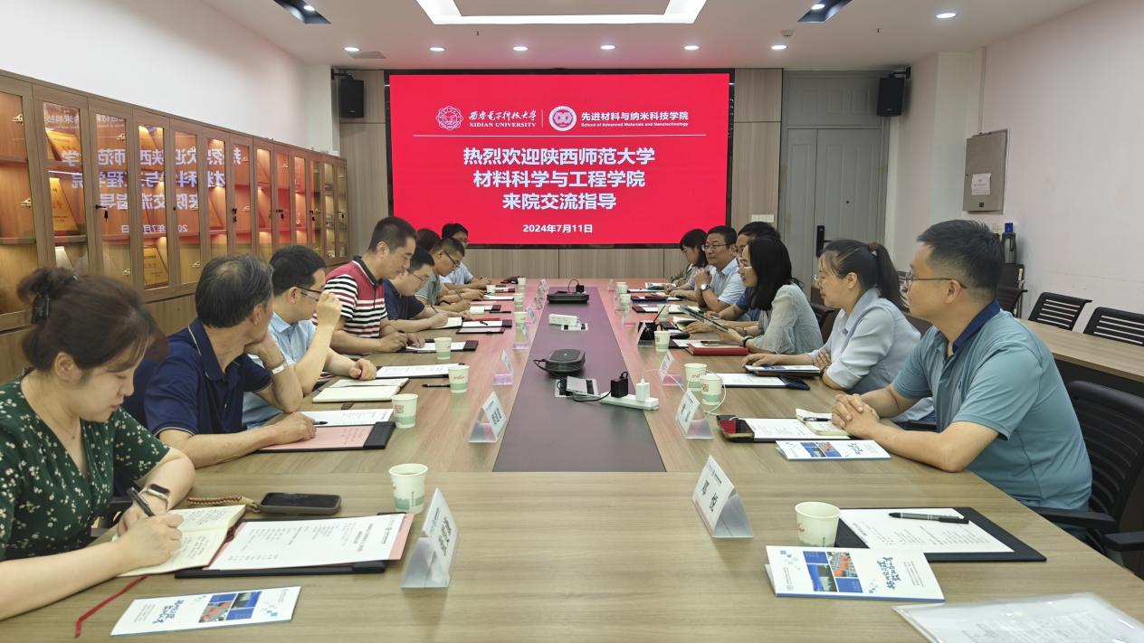 7月11日下午,陕西师范大学材料科学与工程学院院长曾京辉等一行8人到访材料学院交流调研,围绕教育教学审核评估、学科建设、人才培养等方面开展座谈交流,随行还有副院长王强、刘治科、江瑞斌,教学团队负责人胡道道、陈沛、孙颉等。会议由西电材料学院副院长程远主持。