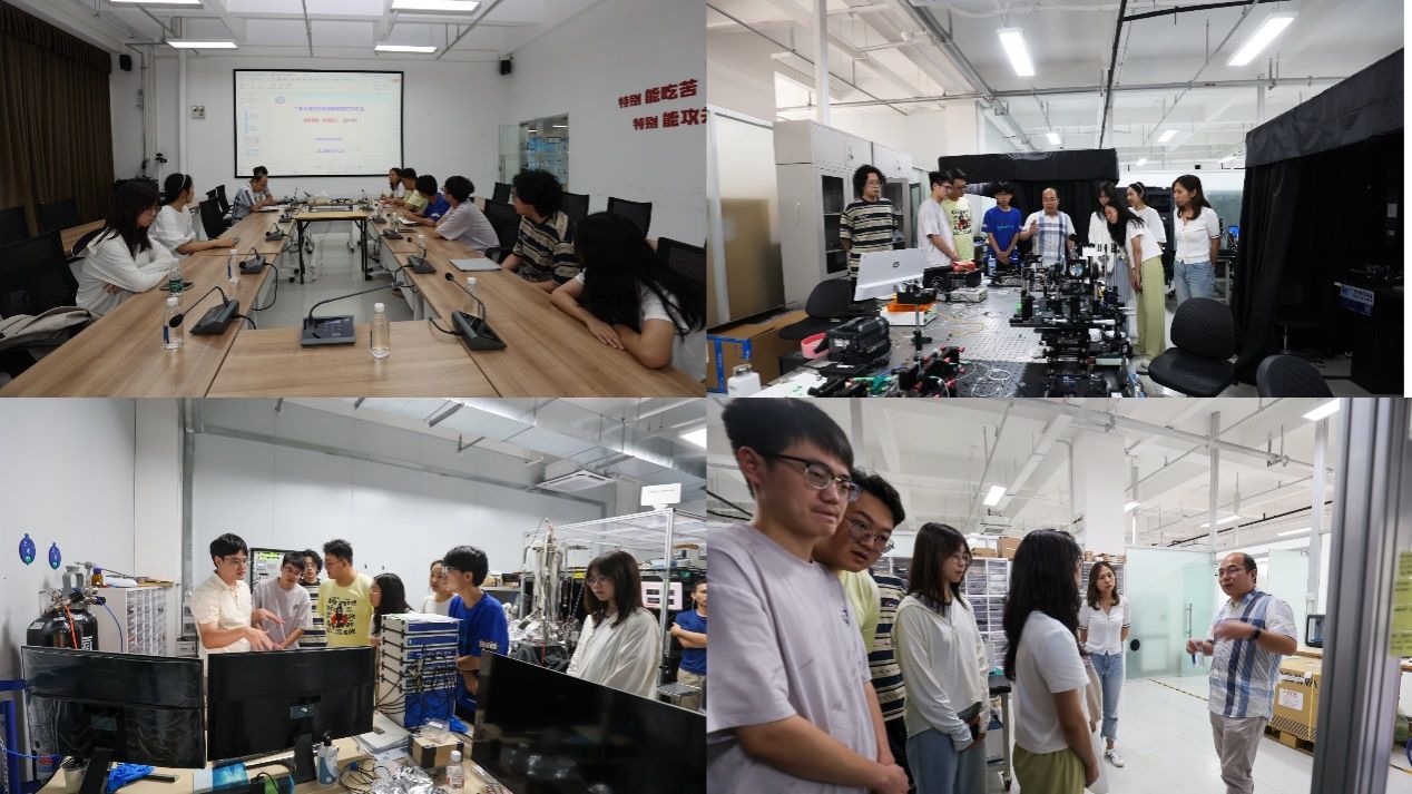 在研究院四十一室副主任王振友介绍下,同学们了解到中国科学院空天信息研究院粤港澳大湾区研究院聚焦太赫兹源和探测器的研发,通过探索新理论、新方法、新材料、新工艺,从微波和光学两个方向瞄准太赫兹核心技术的突破,形成一批引领国际的原创性理论方法和核心器件技术,推动信息科学、现代物理学、材料科学、空间科学等领域的发展。随后,同学们参观了院内多个实验室,王振友结合正在进行的实验与实验设备应用领域向同学们介绍了个人在空天信息技术领域的探索历程和研究成果,并现场邀请同学们观察实验项目,此外他还就当前科技发展趋势、空天信息材料研究方向以及青年学子如何投身科研事业等话题进行了深入浅出的讲解。