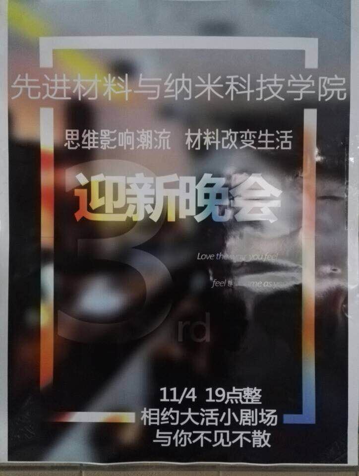 各位老师同学们: 学院定于2015年11月4日晚举办学院第三届迎新晚会,欢迎广大师生参加。