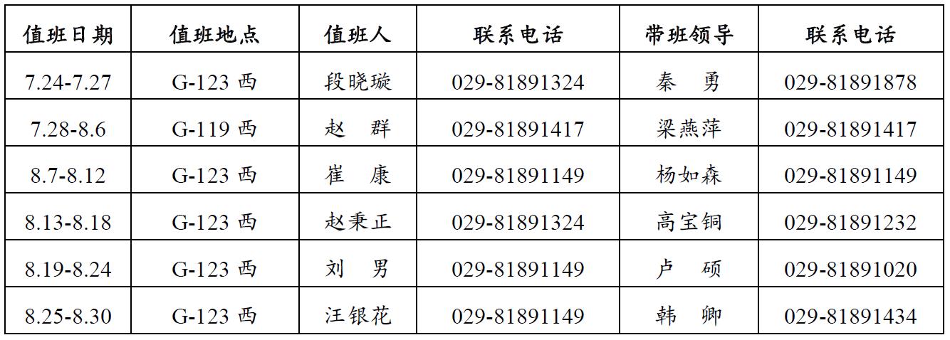 西安电子科技大学先进材料与纳米科技学院2018年暑假值班安排表