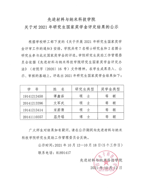 上一篇:先进材料与纳米科技学院2022年推免生录取名单公示(公示期已过)