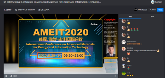(通讯员:王悦 赵雅倩)2020年8月29日-30日,由郝跃院士、王中林院士、Paul S. Weiss院士以及Lars Samuelson院士等知名专家发起并任主席的能源、信息与材料国际会议(International Conference on Advanced Materials for Energy and Information Technology,简称AMEIT2020)在西安电子科技大学成功召开。,来自亚洲、欧洲、北美、澳洲的26位知名院士、专家作了精彩报告,参与互动人数达2.04万人次。本届会议克服疫情造成的困难,通过在线形式提供国际化交流高端平台,促进能源领域基础学科之间深层次交流与融合,推动未来洁净能源的发展,进一步推进引领能源信息与材料研究的创新。