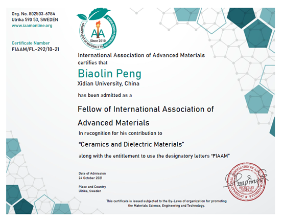 国际先进材料学会(IAAM,International Association of Advanced Materials)是全球先进材料领域的权威学术组织,聚集了世界范围内材料科学与技术领域优秀科学家,致力于为先进材料科学、工程和技术在世界范围内的快速发展提供平台。IAAM会士是国际先进材料学会授予研究人员和科学家的一项荣誉,授予在材料科学、工程和技术领域进行了独创且开展重要研究的科研人员或科学家。经专家提名、学术委员会评审、线上学术演讲等环节遴选产生。