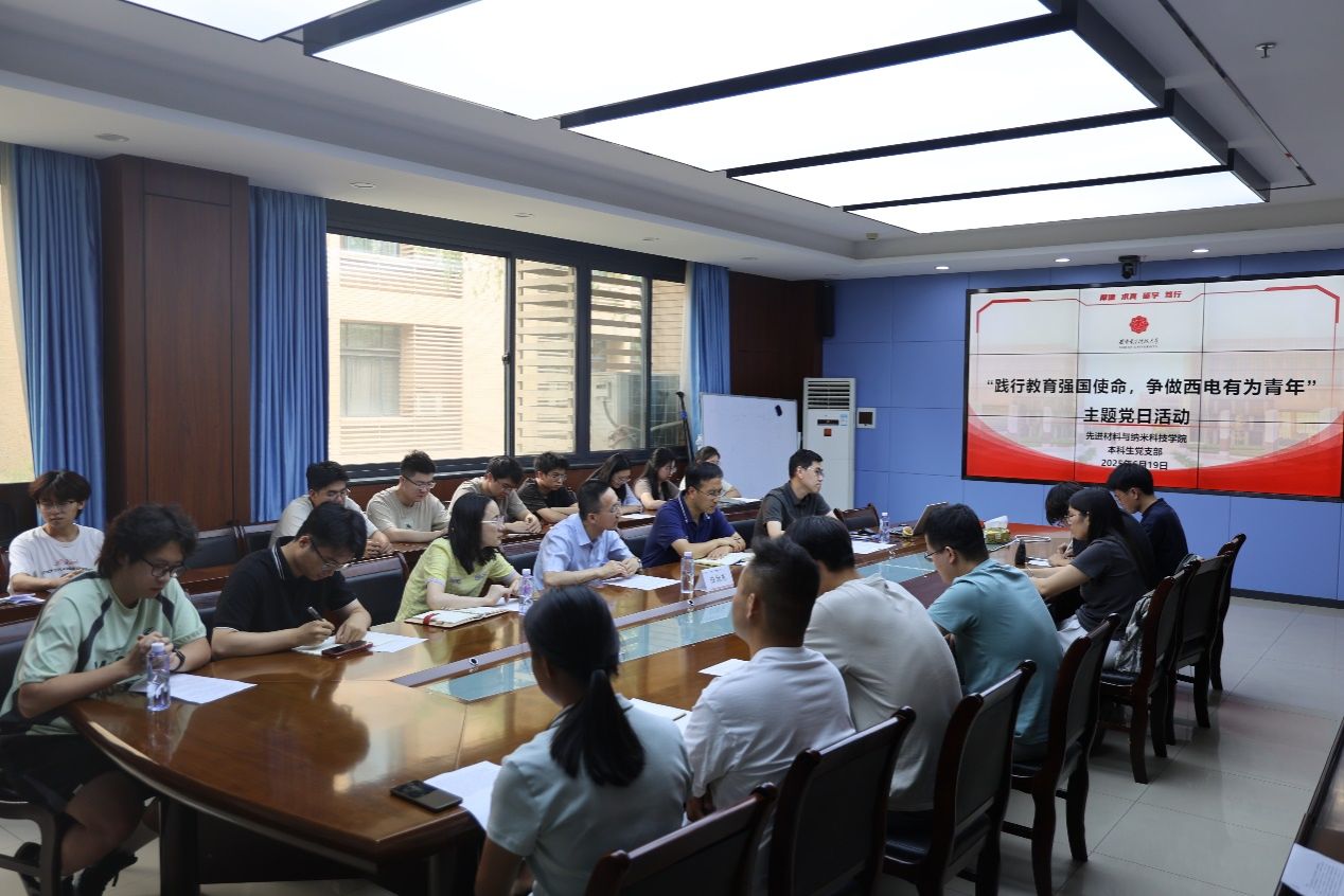 (通讯员 邱鑫)6月19日,先进材料与纳米科技学院本科生党支部举办“践行教育强国使命,争做西电有为青年”主题党日活动,支部联系校领导、党委副书记白旭东到会指导。学院有关负责人,支部党员、入党积极分子及2025届本硕博毕业生代表等50余人参加活动。