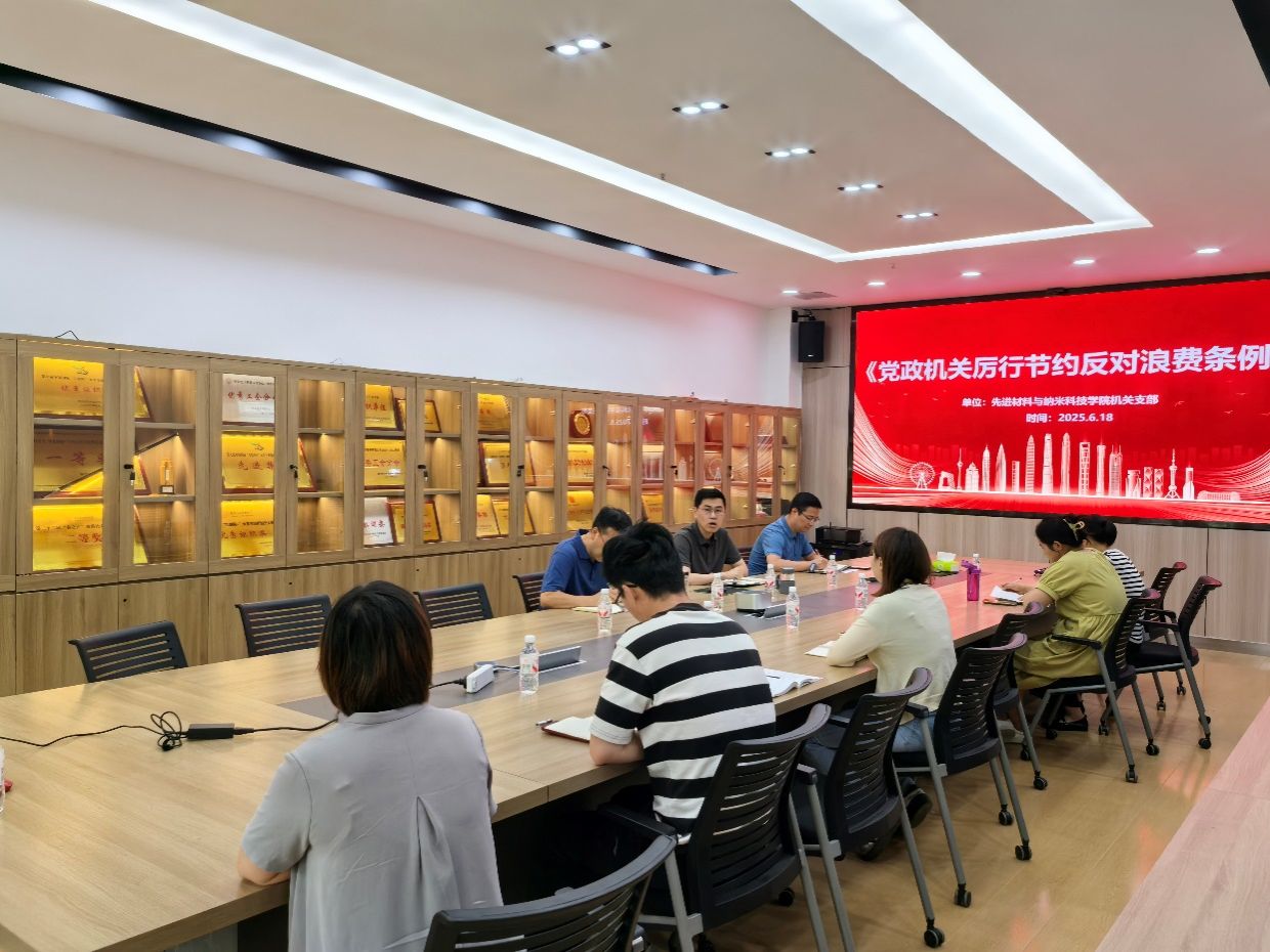 (通讯员 杜小红)为深入贯彻中央八项规定精神,推动理论学习与实际工作深度融合,2025年6月18日,先进材料与纳米科技学院机关党支部在G-142会议室组织开展了中央八项规定精神专题主题党日活动。机关党支部书记陈刚同志主持本次活动,支部全体成员参加学习。