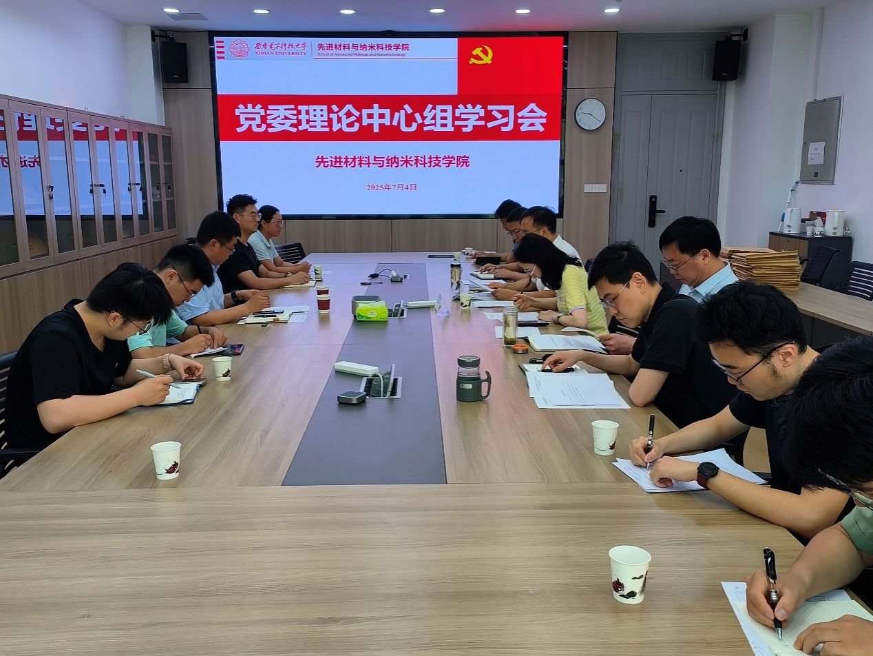 (通讯员 杜敏)7月4日,先进材料与纳米科技学院召开党委理论学习中心组(扩大)学习会,专题学习中共中央政治局就健全落实中央八项规定精神、纠治“四风”长效机制进行的第二十一次集体学习时习近平总书记重要讲话精神等内容,学院党委理论学习中心组成员、支部书记等参加,党委书记宋刚锋主持。