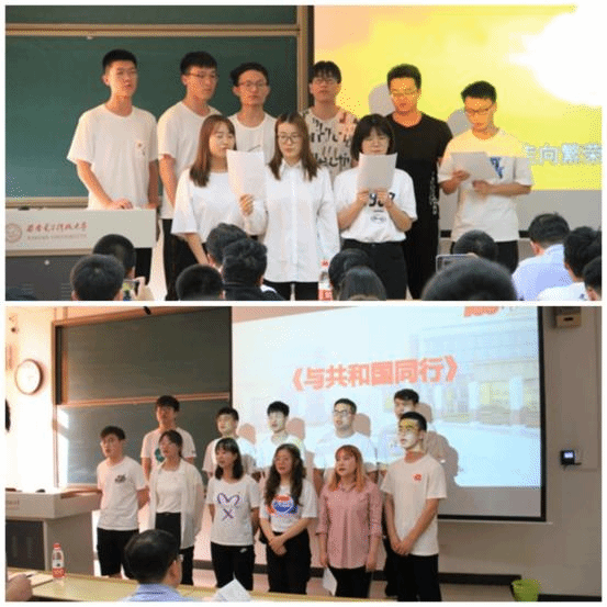 1931年学校半部电台起家,听党话、跟党走,历经九十载风雨兼程办学路,秉承全心全意为人民服务的办学宗旨,为祖国各个战线、各行各业输送了一批又一批中间力量。在建校90周年之际,本科生党支部全体党员唱响校歌《与共和国同行》,为辛勤培育自己的学校送上最诚挚的祝福,表达最深沉的感谢。