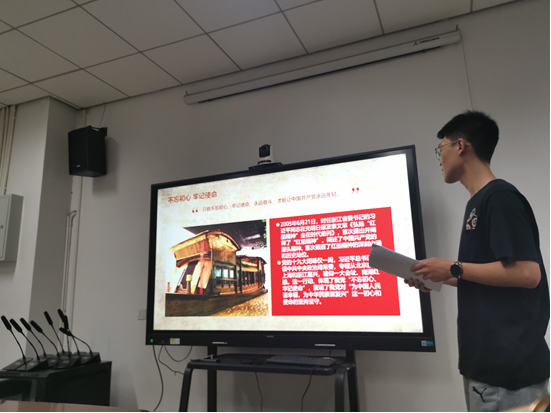刘瑞宇讲道:“红船精神不仅属于历史,更属于现在,属于未来。红船精神是我们党的宝贵精神财富,是指引我们党的伟大事业不断前进的思想武器。在新形势下,继承和弘扬红船精神,有重要的现实意义。进入新时代,肩负新使命,正需以奉献精神召唤亿万人民接续奋斗,从焦裕禄、孔繁森,到李保国、黄大年,我们的事业是靠千千万万党员的忠诚奉献而不断铸就的。然而现在党内有部分腐败分子,钱包鼓了,脑袋空了,所以我们现在更要学习早期共产党人这种立党为公、忠诚为民的奉献精神,用自己的实际行动,践行共产党员的信念和宗旨。”