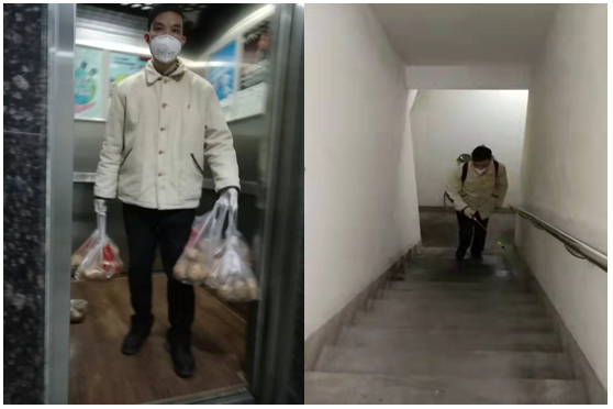 “作为党员,关键时刻一定要有人顶上去,那我就得上。”应用化学系党支部张思锐老师是一名老党员,他主动报名加入社区志愿者队伍,在社区里经常能看到他忙碌的身影,将蔬菜配送到各家各户家门口,进行楼内环境消毒消杀工作。为守一方平安,筑牢疫情防控,张老师认真履行工作职责,进行消杀知识培训,一丝不苟完成各项任务。他不怕苦、不怕累,背着30多斤重的消毒液,爬楼到户,对楼内每户门前过道、电梯间、电梯过道、楼梯间、楼栋大厅进行全面防疫消杀,不留死角,为楼栋筑牢防疫防线。面对疫情风险,为了筑牢楼里人员的安全,逆向而行,无畏惧怕,彰显党员本色!