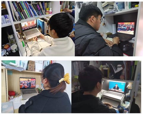 学院领导班子成员、学生党支部党员代表、党务干事在南校区G119会议室集体观看了开幕式,会议初始,全体起立奏唱国歌,之后大家认真聆听了李克强总理的政府工作报告。报告中回顾了2021年我国经济社会发展取得的成绩,“十四五”实现良好开局,并指出今年发展主要预期目标和下一阶段工作总体部署。报告指出,2021年是党和国家历史上具有里程碑意义的一年。以习近平同志为核心的党中央团结带领全党全国各族人民,隆重庆祝中国共产党成立一百周年,胜利召开党的十九届六中全会、制定党的第三个历史决议,如期打赢脱贫攻坚战,如期全面建成小康社会、实现第一个百年奋斗目标,开启全面建设社会主义现代化国家。2022年将继续统筹疫情防控,在优化和落实减税政策、进一步转变政府职能、深化财税金融体制改革、优化和稳定产业链供应链、扎实推进农村改革和乡村建设、加强污染防治和生态建设、推进卫生健康体系建设等重点方面指明了方向。大家在观看过程中仔细聆听,认真记录李克强总理讲话要点,对于关心的热点进行讨论交流。会后,各系所、各支部教师学生结合本职工作和学习,进行了热烈的讨论和交流。