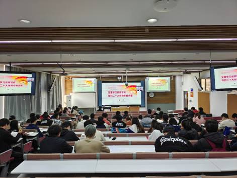 接着,学院紧跟学校步伐,及时制定学院关于深入学习宣传贯彻党的二十大精神的实施方案,通过多种形式深入推动习近平新时代中国特色社会主义思想和党的二十大精神入脑入心。学院党委给每位党员购买了党的二十大报告,各支部组织师生原原本本、逐字逐句学习党的二十大报告和党章,并进行交流研讨,力求学深学透、融会贯通。同时,学院党委和生命科学技术学院等单位共同组织专题报告,邀请国家教育咨询委员会秘书长张力为全院师生以讲座的形式,深入解读党的二十大报告,学院师生以主会场+分会场、线上+线下等多种形式聆听报告,全面学习把握党的二十大精神,形成良好的学习氛围。