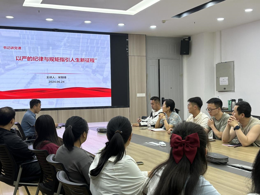 (通讯员 毛国宇)为持续深入推进党纪学习教育走深走实,提升党员纪律规矩意识,6月24日下午,先进材料与纳米科技学院党委书记宋刚锋给联系支部智能生物材料及应用研究所党支部讲授了题为“以纪律规矩指引人生新征程”的党课。