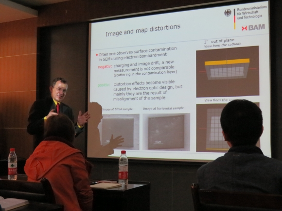 25日下午,Dr. Gert Nolze在材料分析实验室,对石墨烯生长衬底材料的EBSD测试分析进行了具体应用指导,探讨了这项技术在多种半导体材料表征分析中的测试方法、制样技巧以及测试分析条件的优化等问题。
