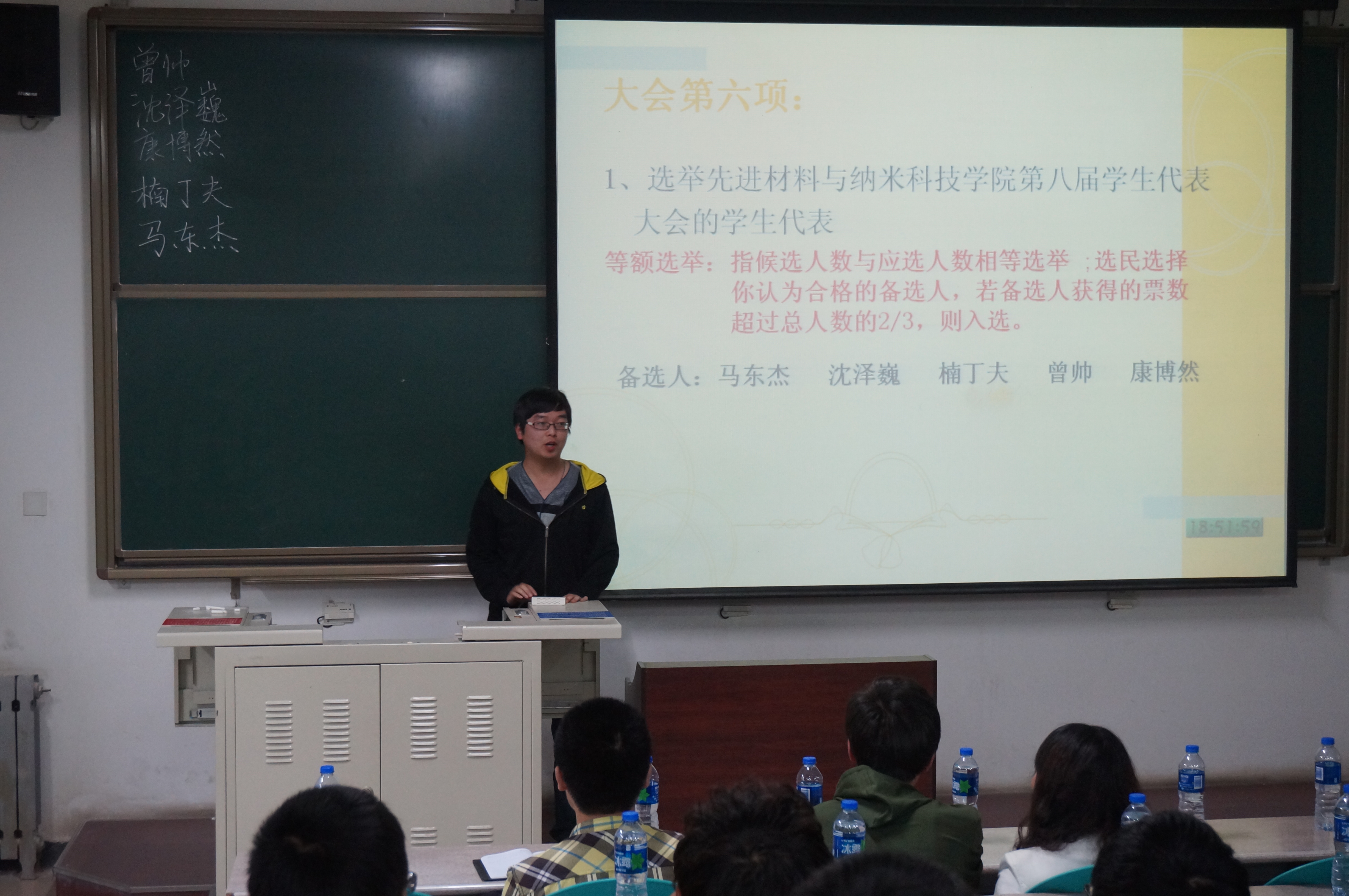 (通讯员:周世海)4月27日下午18点,先进材料与纳米科技学院在B楼203教室举行先进材料与纳米科技学院首届学生代表大会。