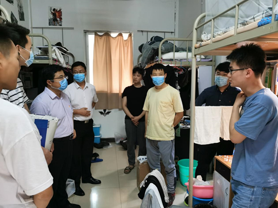 (通讯员:邓悦)7月1日,材料学院党委书记卢硕、党委副书记程远、副院长高宝铜、副院长杨如森等领导班子成员前往2016级毕业班以及2017级学生宿舍,亲切看望慰问即将毕业离校的2020届毕业生以及返校学生。