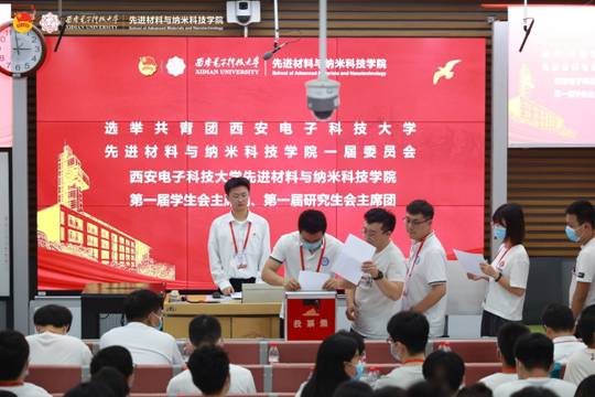 大会闭幕后,共青团西安电子科技大学先进材料与纳米科技学院第一届委员会召开第一次会议,选举产生了第一届学院团委书记班子,崔康同志当选共青团西安电子科技大学先进材料与纳米科技学院第一届委员会书记,刘菲、纪宁、陈超当选副书记。