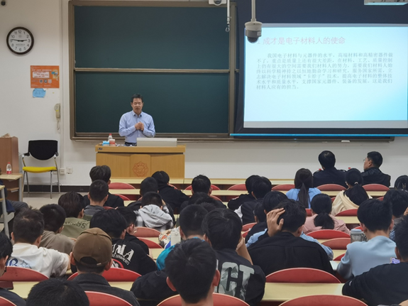 (通讯员:刘伟庆 刘男)为引导青年学子树立科研报国理想,提高学生理论结合实践的科研素养,先进材料与纳米科技学院于10月15日下午,邀请1987级材料学科优秀校友、陕西华星电子集团首席专家、中国电子学会传感与微系统分会电压敏专业学部副主任委员张俊峰老师作客“材化菁英”讲堂,以“天生我材必有用,争当电子材料拔尖创新人才”为主题,面向学院师生畅谈学习、工作感悟。本次报告会由学院党委副书记陈刚主持,学院副院长施建章、曹全喜教授等材料院百余名师生参会。