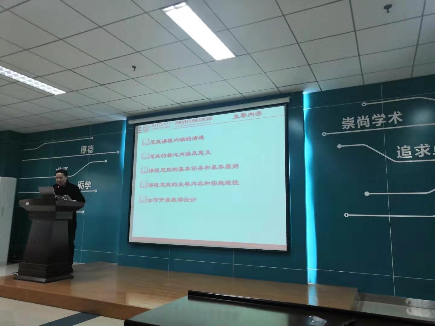(通讯员 杜小红 施建章)10月25日下午,先进材料与纳米科技学院在南校区G118会议室组织召开第二届本科教育教学节活动。学院邀请了陕西省《物理化学》精品资源共享课程负责人、陕西省应用化学实验教学示范中心负责人、应用化学专业负责人梁燕萍教授,陕西省国资委二类专家,宽禁带半导体材料与器件国家重点学科实验室光电研究方向负责人李培咸教授,组织开展了“课程思政”教学研讨及优秀精品课程教学演示系列活动。本次教学研讨活动由院务助理施建章主持。