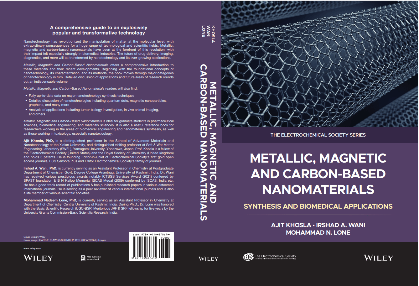 近日,由材料学院Ajit Khosla教授作为第一作者编写的专著《Metallic, Magnetic, and Carbon-Based Nanomaterials: Synthesis and Biomedical Applications》由WILEY出版。专著一480页,约11万字,全面介绍了金属、磁性和碳基纳米材料及其最新进展。