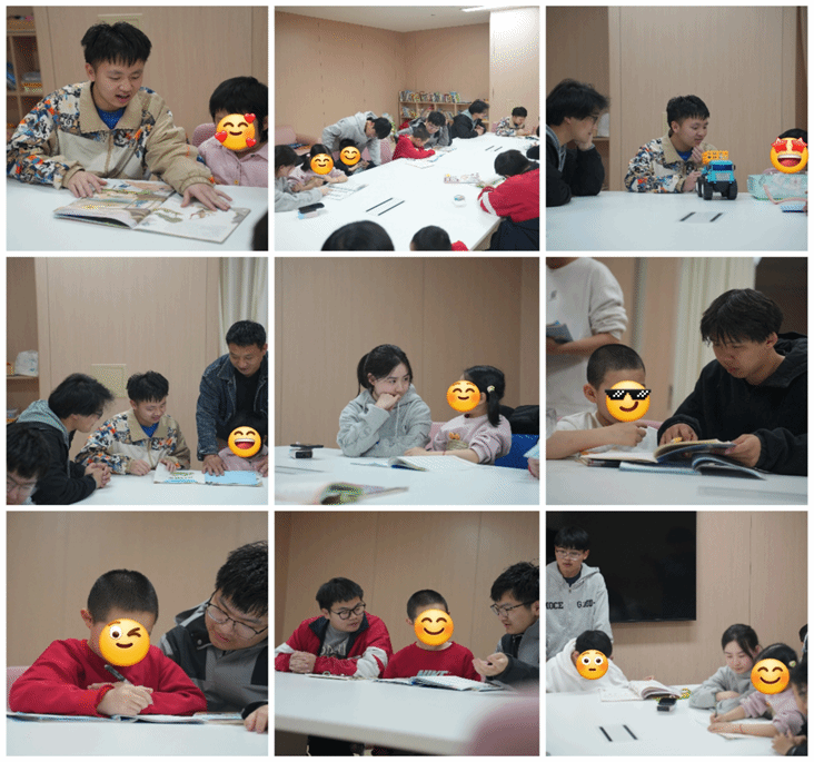 在儿童康复科的教室内,志愿者们化身“小老师”,根据孩子们的学习需求进行一对一辅导。在文化课辅导环节,志愿者们耐心地为孩子们讲解语文、数学等学科知识,帮助他们巩固课堂所学。对于孩子们提出的问题,志愿者们用生动有趣的方式一一耐心解答,帮助他们理解的同时让知识在轻松愉快的氛围中悄然传递。此外,志愿者们还准备了手工材料和故事绘本,陪伴孩子们一起做手工、讲故事,现场气氛其乐融融。
